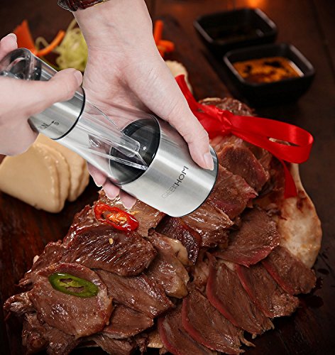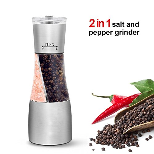 ✓ HIGH QUALITY BRUSHED STAINLESS STEEL - This 2 in 1 Salt and Pepper Grinder features a stylish design which is elegant enough for your dining room table or use in your kitchen as you prepare food.