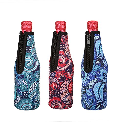 HIGHT QUALITY NEOPRENE MATERIAL WITH ZIIPPER--- Each bottle coolies cover is carefully zig-zag stitched by the side seams. Convenient front zipper opening for easy use.