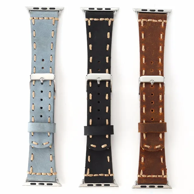 상품 내용 빈티지 가죽 수제 시계 밴드 애플 시리즈 1/2 블랙 브라운 블루 38/42 미리메터 남성 클래식 스트랩 I220.