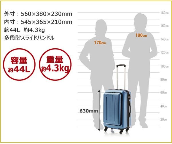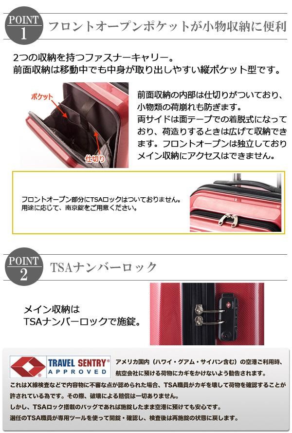 | 小物類を収納できるフロントオープンポケット付スーツケース!! |