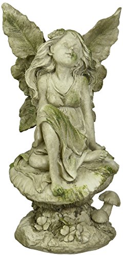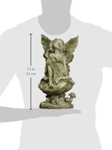 Exhart Fairy Sitting On Mushroom Statue, 13"
