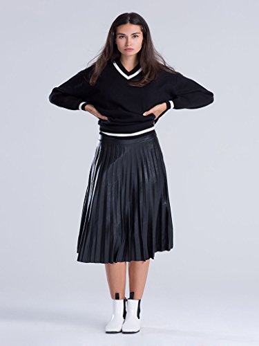 -. Title : Persun Women Burgundy PU Midi Pleated Skirt