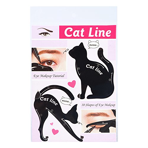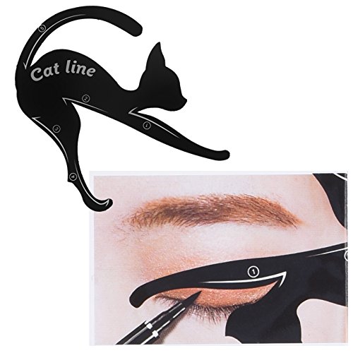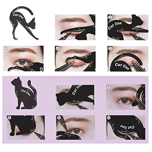 Pretty See 2 in 1 Cat Eyeliner Stencil Set Cat Shape Eyeliner Guide Template Set Professional Eyeshadow Applicators Template Tools, Set of 12, Black