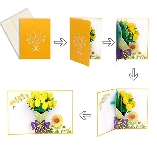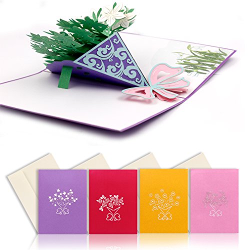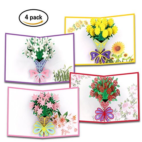 -. Feature : ✪ Pop Up Flower Card - Gently open the card, a bunch of flowers will surprisingly show up. This greeting card set contains 4 different flowers, will be a great birthday or holiday gift to Mom, teacher, friends, lover, etc. / ✪ Greeting Card Assortment - Includes 1x rose pop up card, 1x sunflower pop up card, 1x lily pop up card and 1x gardenias pop up card, featuring an assortment of various fun and colorful illustrations. / ✪ Size & Superior Quality - Each pop up card measures 6 x 8 inches, made of 300g top-quality hard art paper for elegance and extra durability. With enough blank inside for your personal messages. / ✪ Suitable for All Occasion - Special pop up greeting card, perfect as birthday cards, Christmas cards, New Year cards, thank you cards, mothers day cards and get well cards. Envelope included. / ✪ 100% Satisfactions Guarantee - We offer satisfactions guarantee and 5-star customer service. For those who have quality problem, we offer a 100% no risk money-back guarantee.