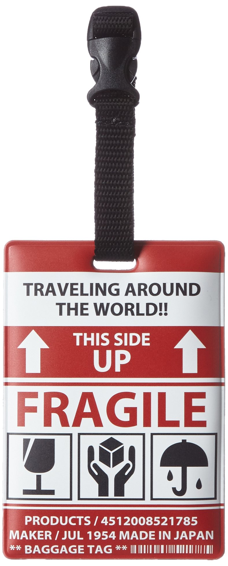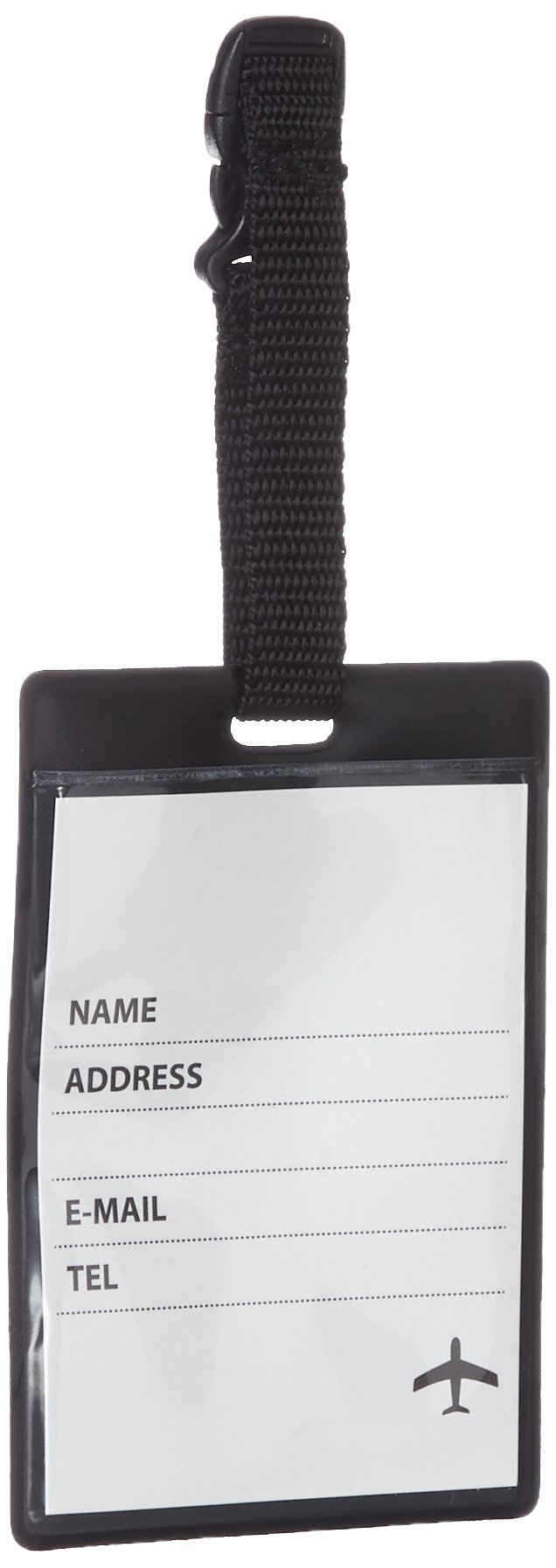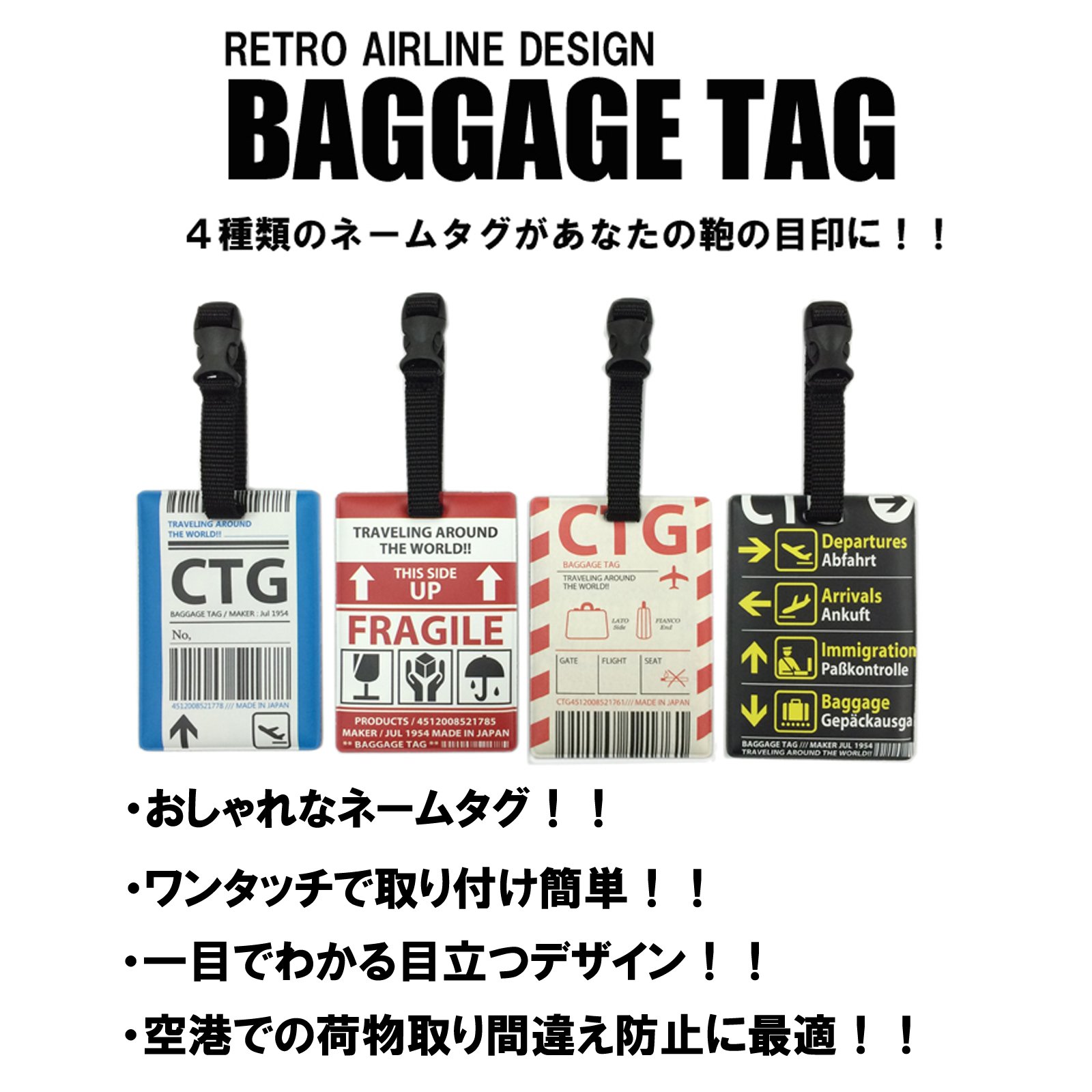 It is a colorful baggage tag with motifs of various aviation related boards and signatures.