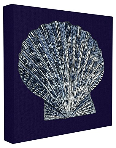 Stupell Home Décor Distressed Navy and White Scallop Shell Stretched Canvas Wall Art, 17 x 1.5 x 17, Proudly Made in USA