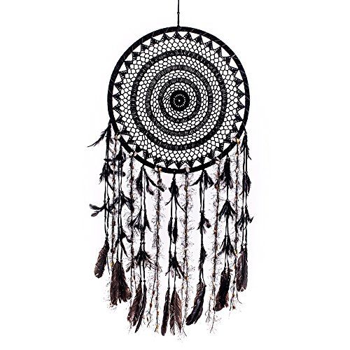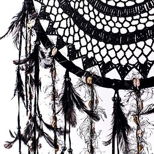 Caught Dreams Dream Catcher ~ Extra Large Black Crochet Boho, Hippie, Gypsy Style with Black 16 inch Diameter & 36 inches Long!