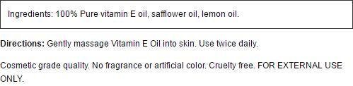Studio : Hobe Labs Publisher : Hobe Labs Binding : Health and Beauty Product Description Vitamin E Oil helps provide anti-aging protection against fine lines, wrinkles, and stretch marks. Improves skin elasticity. Leaves skin looking healthier and more youthful. 0