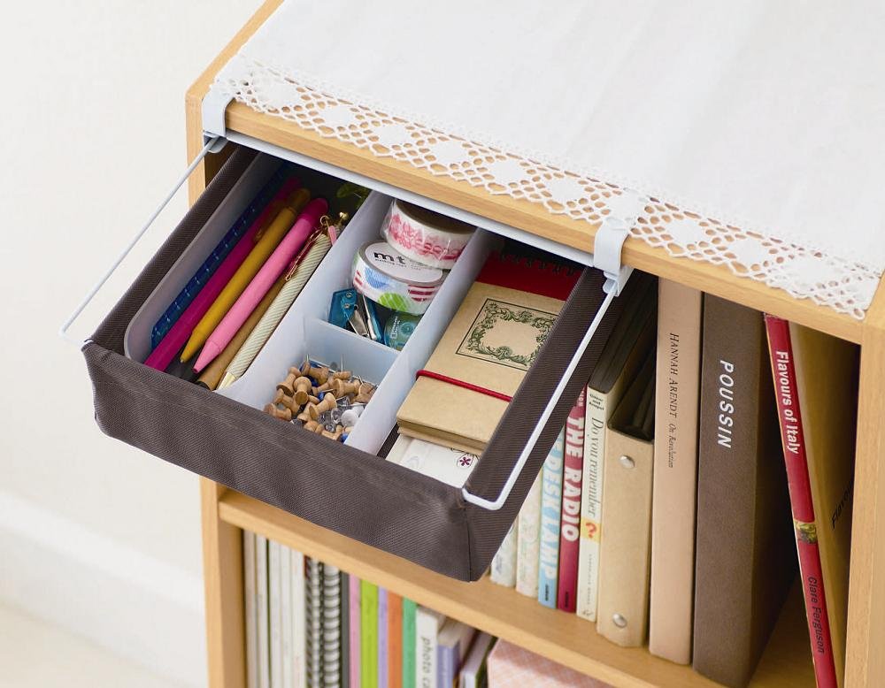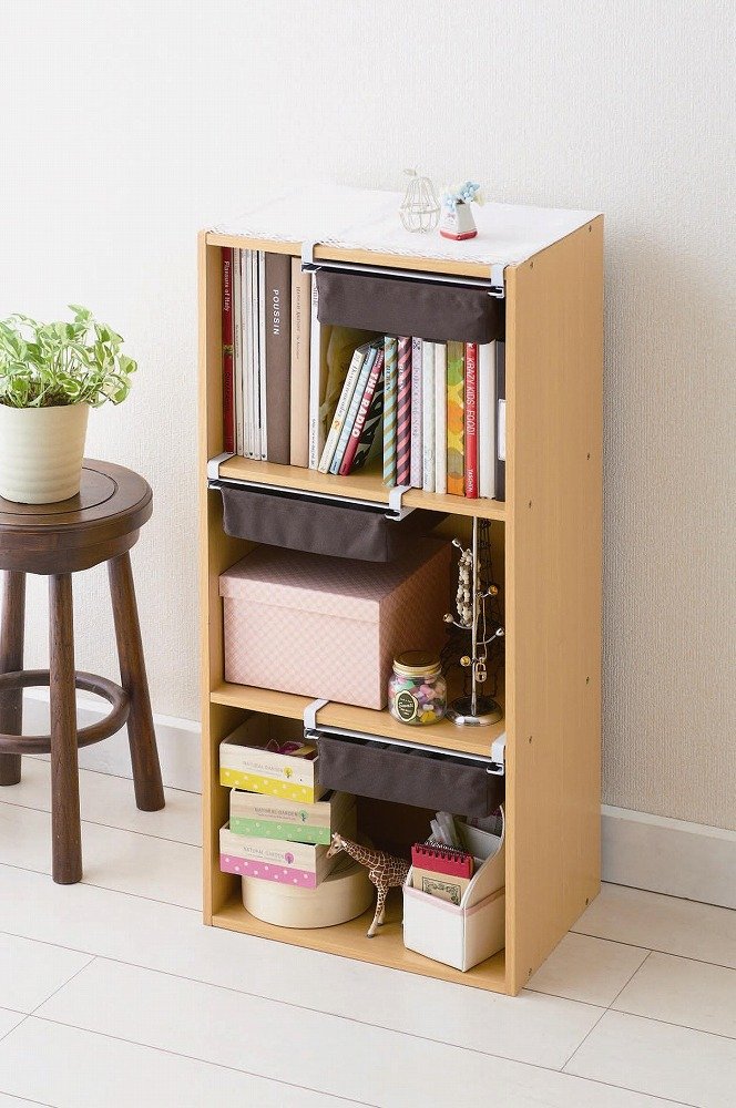 The upper part of a three-stage box that tends to be left out can be utilized as a drawer.