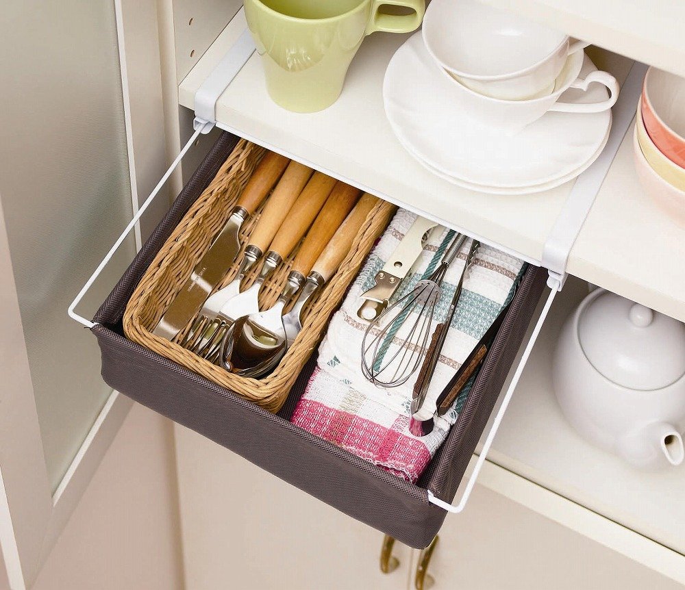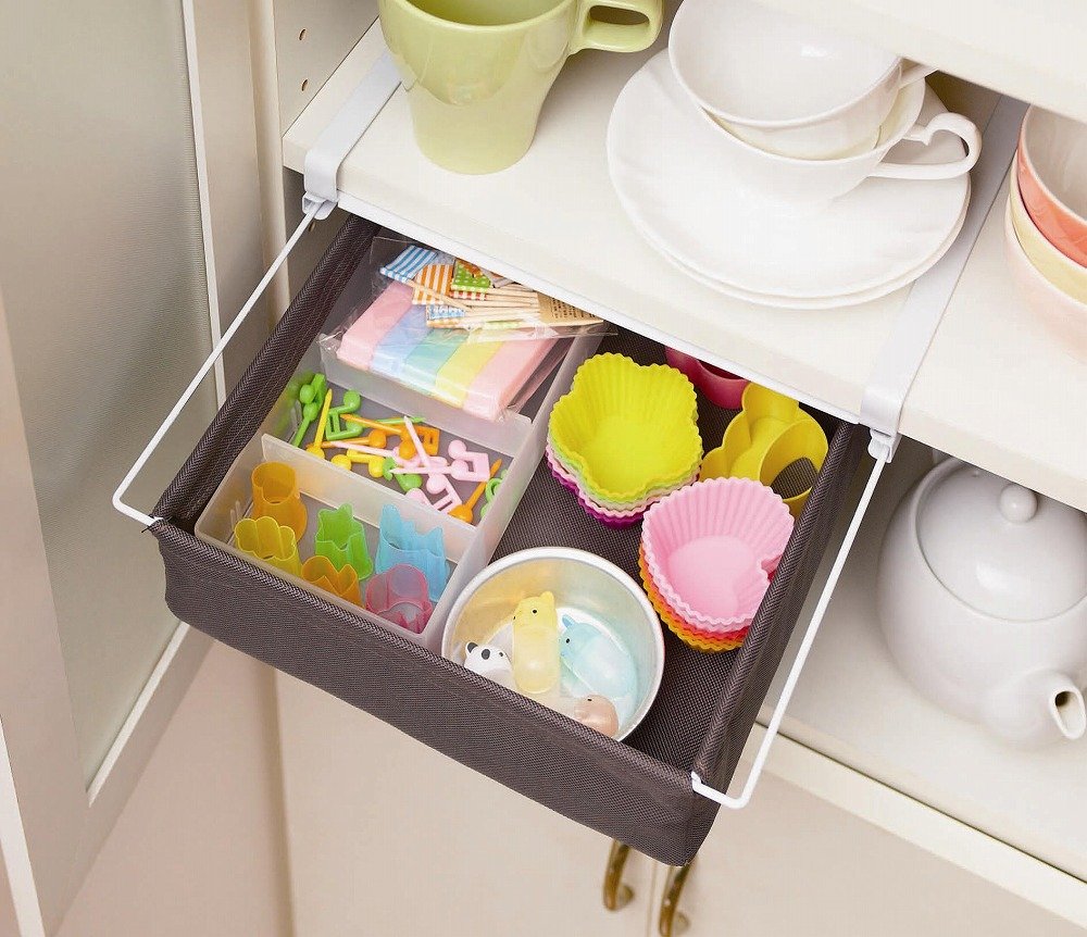 Use sling rack (drawer) hanging sliding rack (drawer) well utilizing "shelf gap".