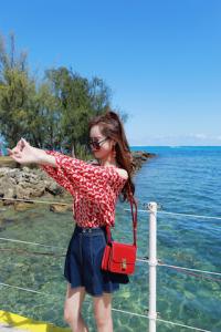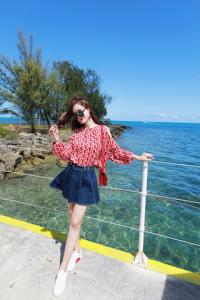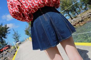 濃いめのブルーのカラーがウエストも引き締めて見せてくれますね♪