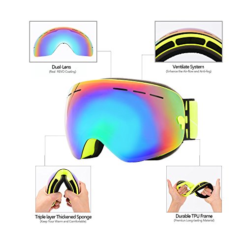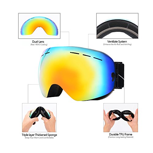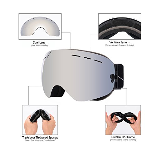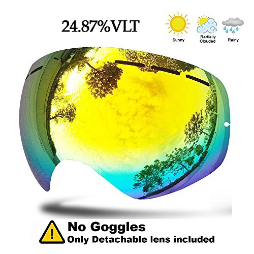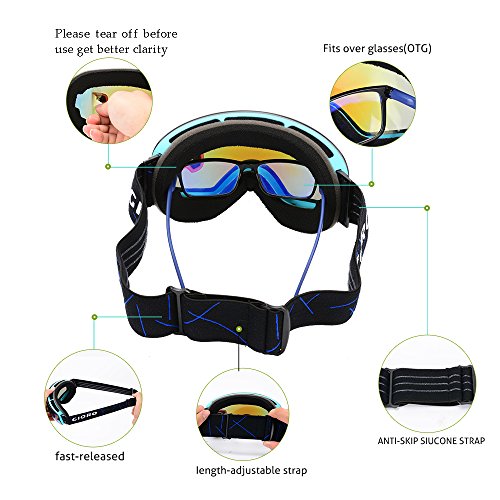 Studio : GIORO Publisher : GIORO Product Description Feature: ?Better Anti-scratch Performance ?Optical Clarity with Super Wide Spherical Vision ?Comfortable,Safe Health Materials ?PC lens with good insulation, anti-static. TPU frame for impact-resistance. ?Triple Layers Foam : High elasticity, comfortable and breathable foam .Designed to reduce fogging and optimize the flow of air over the inside of the lens. Its soft and smooth texture cling your face closely.Anti-winds and keep you warm. ?FDA CE Approved. ?100% UV400 Protection. ?Lens Style: Spherical ?Lens Finish: Full REVO ?Elastic strap for better helmet compatibility. ?Lens replacements are sold separately.