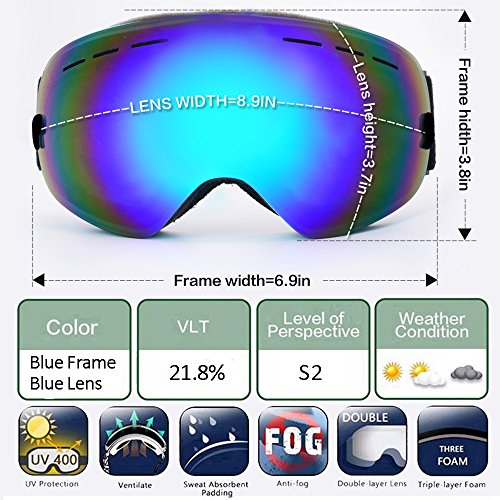 Tips: Pls do wipe the OUTER LENS with the pouch gently, if the outer lens get dirty . Pls do not wipe the INNER LENS which will invalidating anti-fog function. Pls keep the goggle in the POUCH or BOX instead of facing on the ground or desk. Pls do not use mascara or other oily substance in case lens gets dirty. Pls air-dry the goggles after every snow sport e.g. skiing, snowboarding and etc. This goggles is good for skiing snow snowboard snowmobile skate motorcycle riding.