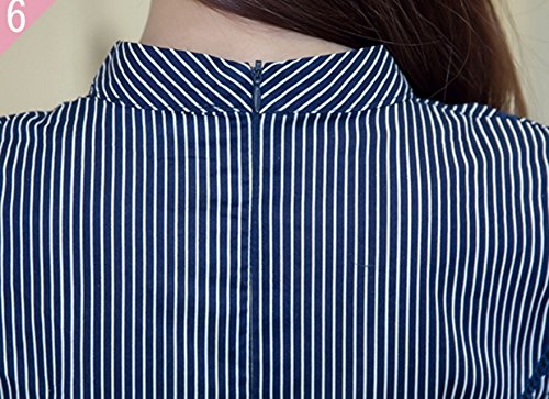 -. Title : (ピースランド) PEACE LAND ストライプ リボン付き ペプラム ブラウス 七分袖 スタンドカラー 清楚 レディース