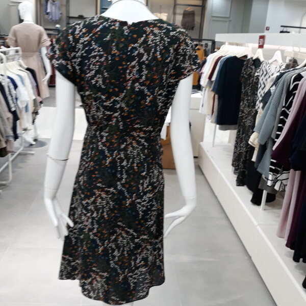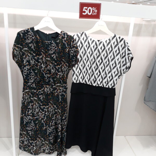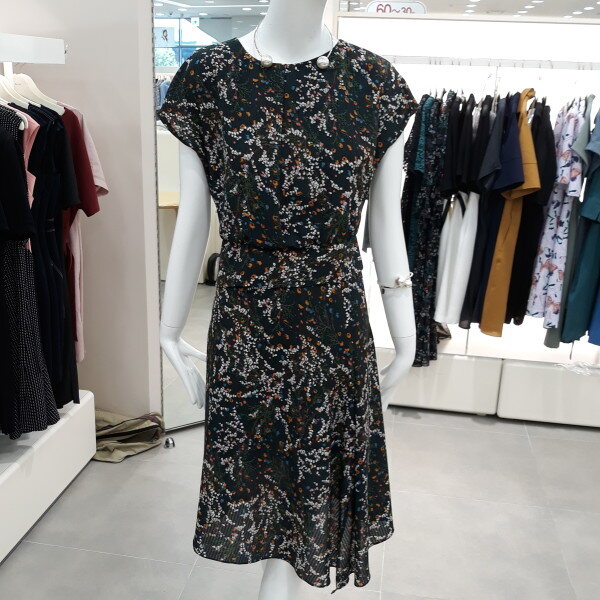 독특한 지오메트릭 패턴의 상의와 사선으로 언발란스하게 커팅된 스커트를 동시에 착용한 듯한 원피스입니다 깔끔하고 포멀한 아이템으로 액세사리와 매치하면 멋스러게 활용할 수 있습니다 안감이 있어 비침 없이 착용 가능합니다