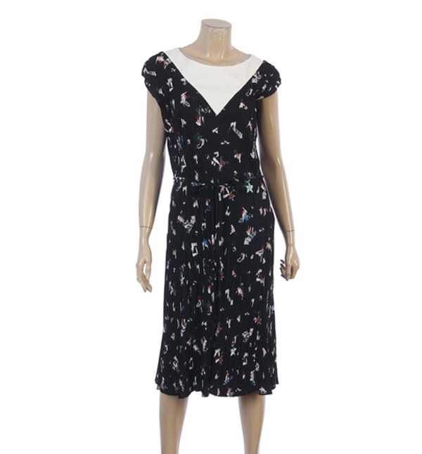 LIST, 잔잔한 아코디언 주름과 배색 포인트로 트랜디한 스타일 감각을 연출하는 원피스입니다