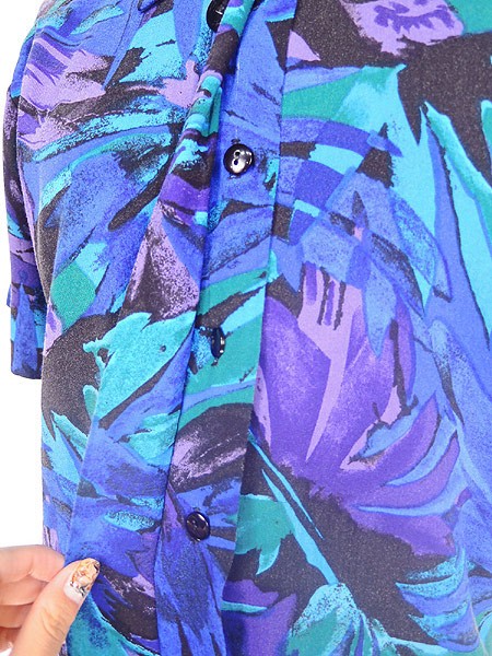 Ladies ブランド- カラー青・緑・紫・黒 メール便不可 コンディション★★★ 素材レーヨン 表記サイズM スタッフコメント前立てに糸引きあり。表ボタンにキズあり。 実寸サイズ 着丈 64 cm 身幅 49 cm 肩幅 40 cm 袖丈 19 cm ※ウエスト・ヒップ以外は平置き採寸
