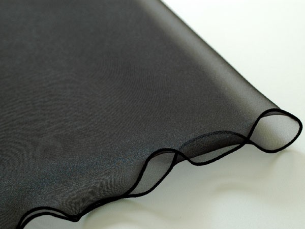 さまざまなバリエーションをお楽しみいただけるリーフデザインです。(えんぴつのように両端がとがっています。) シンプルなオーガンジーショールですが、贅沢にバイアスで裁断し、ふちが波打つようにデザインしています。