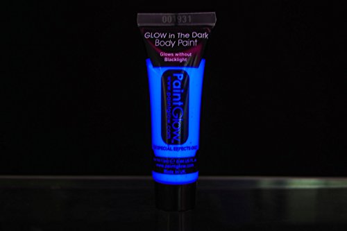 Glow violet is neon colored in normal light and will glow with or without UV lighting. PaintGlow UV Reactive Face and Body Paints are manufactured using a wax-based system giving our product a smooth, thick and creamy application to the face and body. This product does not contain no artificial fragrances and is a natural mild wax scented product made with 100% organic beeswax, carnauba wax, and coconut oil containing vitamin E. They adhere to the skin quite well and are smudge resistant. This product is totally different from our line of UV body paints. Simply charge the paint with a bright light source and then go into a dark room and the paint glows on its own WITHOUT the need for a UV light! This is a 3 in 1 paint which glows in the dark, is neon colored in daytime and will also glow under UV lighting. Note that you can charge these body paints with ANY LIGHT SOURCE, the stronger the light the brighter and longer lasting the glow. Apply the paint to an area of the face/body and allow to dry. For a more intense glowing effect, apply a further 2 coats. Once paint has dried shine a UV light or any light source at the Glow in the Dark body paint for a few minutes and then go into a dark room and the paint will glow on its own. The longer you charge the paint the longer the glowing effect.Feature