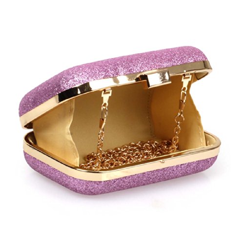 BMC Iridescent Violet Purple Glitter Covered Fabric Hard Case Alloy Chain Strap Fashion Evening Clutch