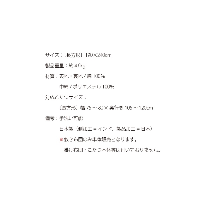 원본상품명: こたつ こたつ敷き布? 長方形 厚 3cm ボリュ?ム 190×240 こたつ布? シンプル 北? モダン キルト キルトラグ 日本製 底冷え 手洗い OK インド綿 こたつ敷き布? ALF〔アルフ〕 長方形 190×240cm ベ?ジュ ブラウン ダ?クブラウン