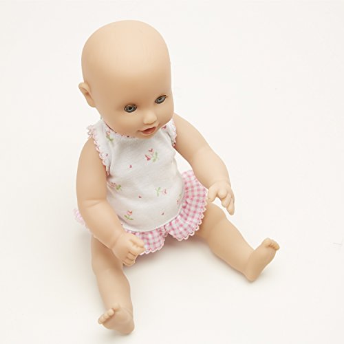 - Feature : Posable baby doll is perfect for bath-time play / Dressed in a charming, gingham and flowered sundress, underpants, and matching bonnet / Can "drink" from her bottle, and can sit on her very own potty chair / Includes a pacifier and a pink-trimmed, self-stick diaper / Exceptional quality and value