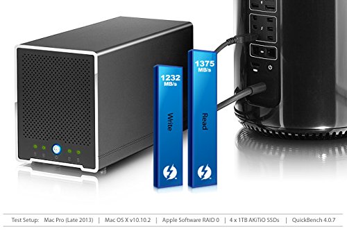 Faster than ever, you can now achieve speeds of up to 1375MB/s with this 4-bay ThunderboltTM 2 technology storage enclosure. The removable trays allow for easy installation and replacement of the drives. They are designed for 2.5" SATA 6Gb/s drives, SSDs where speed is the priority and HDDs when it's important to maximize the storage capacity. An ultra durable aluminum casing provides efficient heat dissipation, plus a large rear fan keeps your drives cool during long hours of operation.Feature