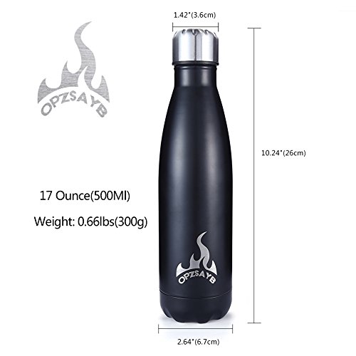 -. Feature : ✔DURABLE QUALITY, BPA-FREE: This sleek sports water bottle is made from high quality food grade 18/8 stainless steel on both inside and outside walls, well-designed to last and should not rust. Non-toxic, 100% BPA Free for heath-safety, better than using glass or plastic water bottles. / ✔NO LEAKING, EASY CLEAN: The inner cap is screwed down to tighten the seam, which prevent any accidental spills, even filled with ice, the bottle will not sweat. The double walled vacuum insulated construction allows for easy filling and cleaning, giving you years of use. / ✔UP TO 24 HOURS INSULATION: In any temperature condition you go, double walled vacuum insulation design with vacuum-seal cap can keep your drinks cold or hot up to 24hrs. The insulated water bottle with cool fashion design will be an ideal gift for your family or friends. / ✔PERFECT SIZE, EASY CARRY: The 17 Oz (500 ml) capacity water bottle, the right size to help you keep hydreated outdoors, ideal for summer outdoor sports, like camping hiking cycling. Lightweight design, perfect for your car, bicycle, gym bag and backpack. Easy and comfortable in hand and drink, suitable for any outdoor activities. / ✔SATISFACTION, 100% GUARANTEED: World-class customer service! Any problems with the products, do not hesitate to contact us for replacements or refund. We will always be there with you. Best guarantee, great surP.R.Ise if you choose us.