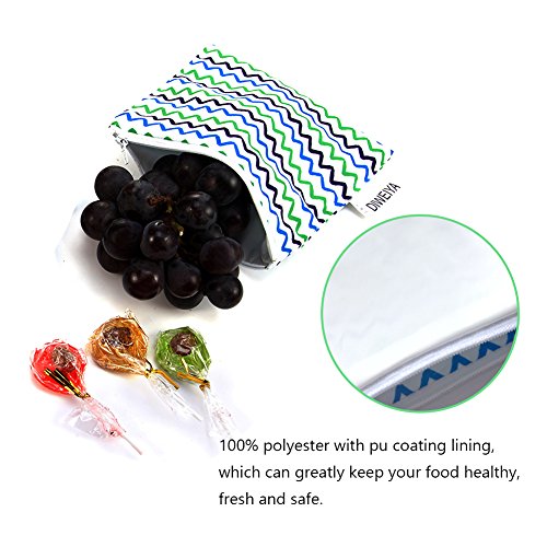 - Food Safe Fabric- Made of 100% food-safe polyester outside & 100% polyester with pu coating lining,which can greatly keep your food healthy,fresh and safe.No more plastic baggies waste after using reusable snack bags.