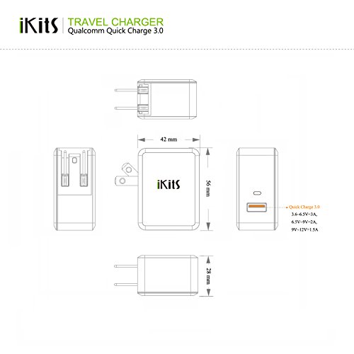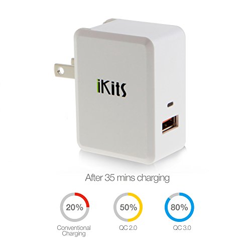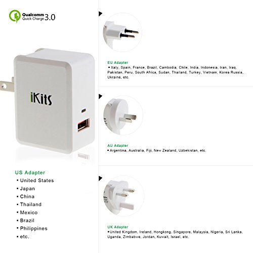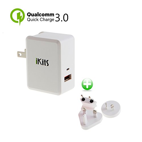 Quick Charge 3.0, iKits USB Wall Charger 1 Port QC3.0 Quick Charger for Samsung S7/Edge, HTC 10, LG G5 Smart IC for iPhone /iPad & more International Travel Adapter White