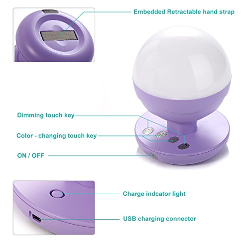Rechargeable LED Light,RICOV Multifunctional Intelligent Baby Bedside Night Light Dimmable Desk Lamp Portable Outdoor Camping Light with Fingerprint Touch and Retractable Hanging Loop,2200mAh - Purple