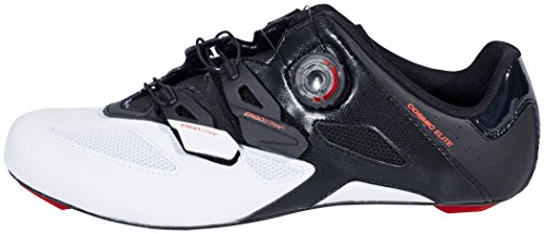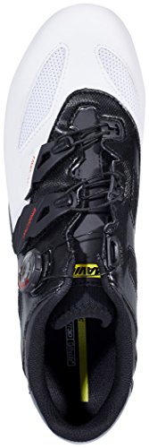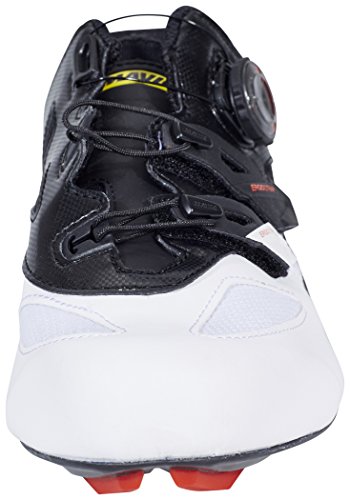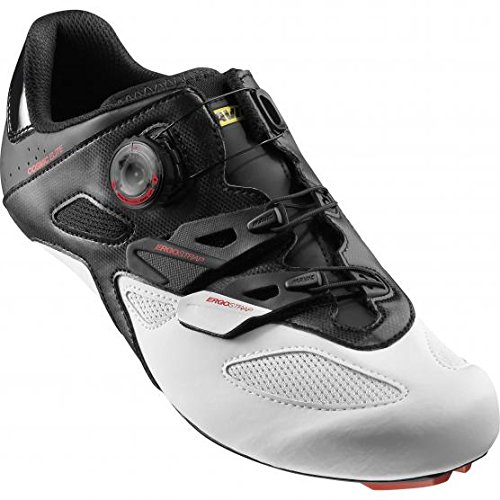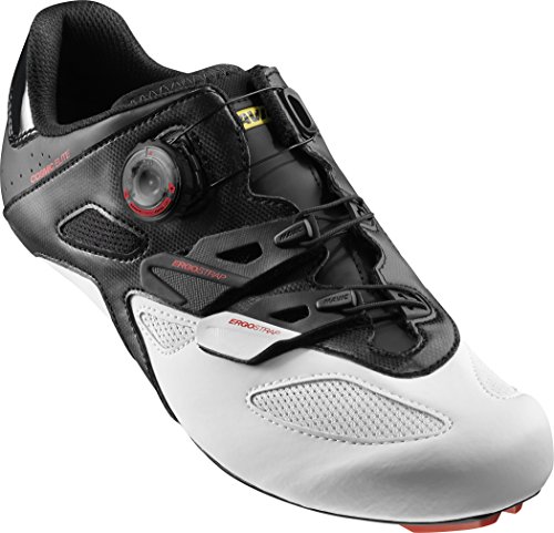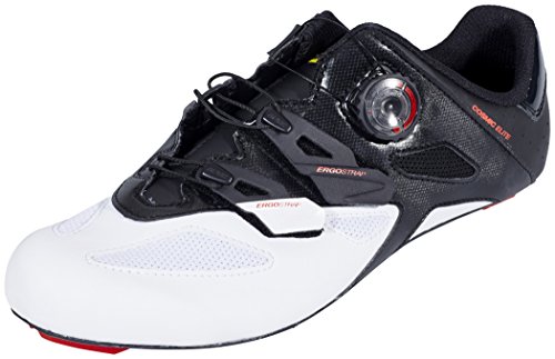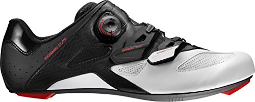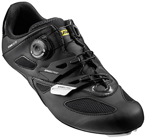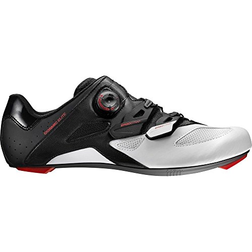 Studio : Mavic Publisher : Mavic Binding : Apparel Product Description The Mavic Cosmic Elite Shoe is combines the precision of the Ergo Straps and Mavic Ergo Dial QR Dial with the oversized Endofit Tongue to keep your feet centered over your contact point with the pedal. The stiffness of the Energy Carbon Comp Outsole maintains your power with its Index Energy Transfer Value of 60! The Ergo Fit 3D Insole is a dual density foot bed with Ortholite Foam and arch support to maintain your optimal positioning. Available in Black/White or Black/White/Fiery Red. 0