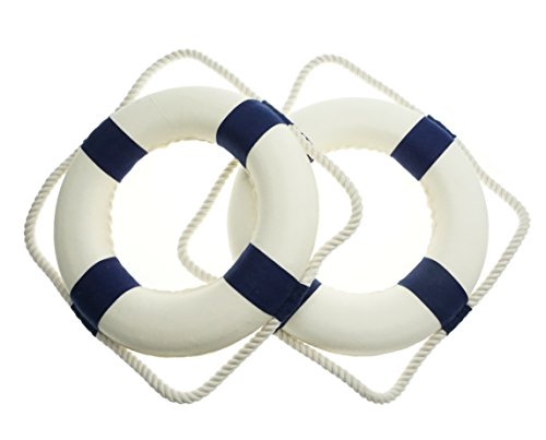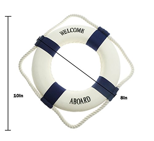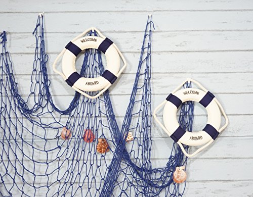 8 Inch Rustic Nautical Decorative Welcome Cloth Life Ring Buoy Home Wall Door Hangings Decor, Blue, Pack of 2 By Bilipala