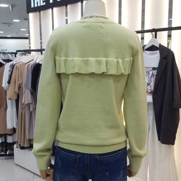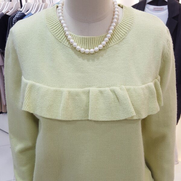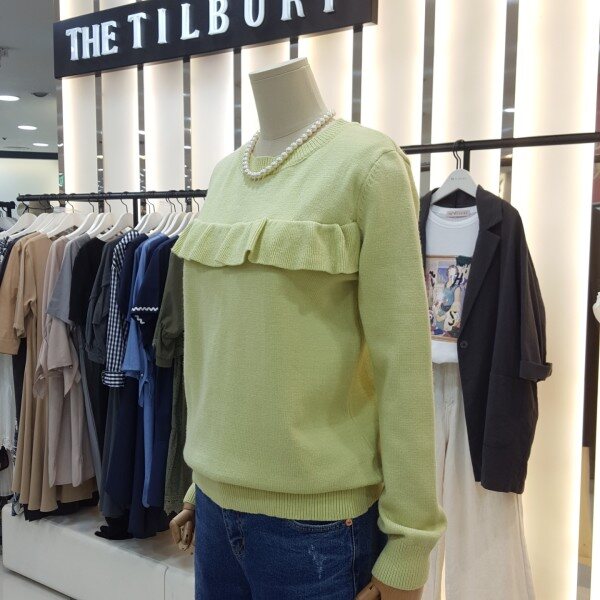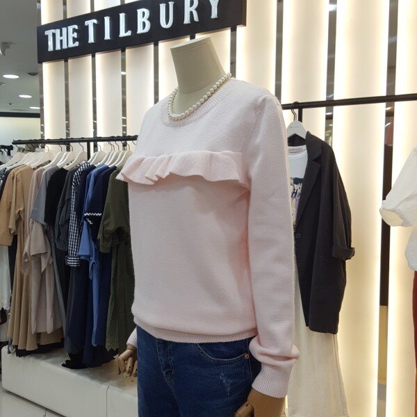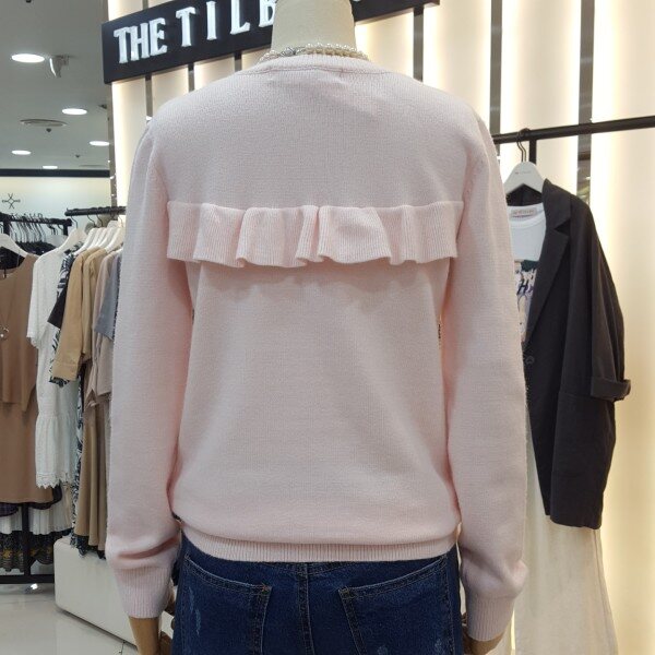 로맨틱한 무드를 더하는 러플장식이 포인트가 되는 니트입니다.라운드네크라인의 제품으로 캐주얼하면서 바디라인에 적절히 피팅되어 편안하게 착용할수있습니다.