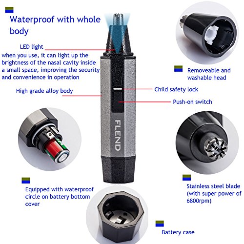 Flend 2-in-1 Waterproof Nose Ear Hair Trimmer, Electric Beard Trimmer, Eyebrow Clipper and Shaver, Cordless Men’s Grooming Kit, Battery-Operated