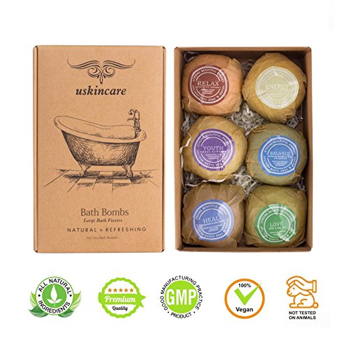 6x3.5oz Fizzy Bath Bombs+Elegant gift set packaging--Makes the Perfect Gift for Any Occasion Get Uskincare's Luxurious Aromatherapy Bath Bombs Gift Set for Yourself or Someone You Love Now!