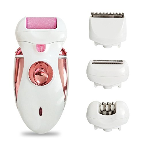 - ♥ 4-in-1 attachments include: Epilator head, Pumice Stone head, Shaver head and Hair Clipper.