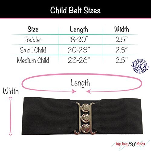 Hip Hop 50's has done it again! Complete your 50's costume with a 50's style elastic cinch belt that will bring you and everyone around you right back to the iconic fifties era. Featuring a variety of colors and patterns, you can choose just the right 50's belt for your child or toddler to complement any Halloween/dress-up costume, sock hop, pin-up, or retro dance outfit. Each cinch belt is carefully handmade by seamstresses here in the USA. Rest assured that you are supporting local businesses when you purchase our high-quality belt and all Hip Hop 50's apparel. The stretchy elastic is 2 1/2" wide, with a sturdy, silver, metal clasp. With sizes for nearly all body types, our cinch belts complete your 50's look and are the perfect accessory for a halloween costume, dance party, sock hop or even for your everyday outfit.Feature