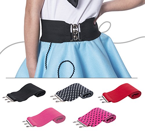 PERFECT FIFTIES STYLE - Purely an icon of the 1950s! The retro look you are going for really stands out with this vintage fashion. The poodle skirt, red lipstick, and elastic cinch belt are iconic features of the fashionable era. Our variety of colors and patterns will ensure you can choose just the right belt to complement any Halloween/dress-up costume, sock hop, pin-up, or retro dance outfit or even to use as party favors.