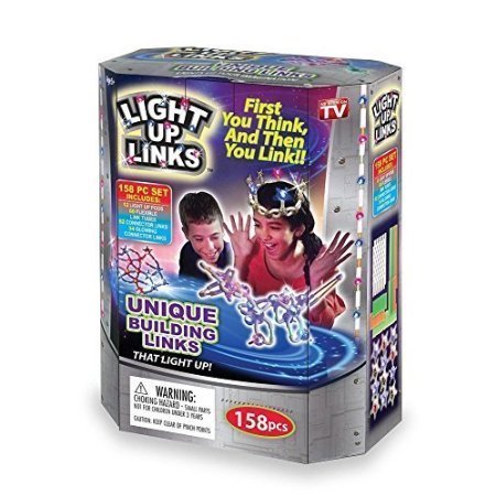 Light Up Building LinksForget those boring building blocks! Just click to connect and build cool shapes, then shake or tap your creations to make them flash and glow--no batteries needed!158-piece set includes 12 light-up pods, 60 flexible link tubes, 52 connector links, and 34 glowing connector links. Includes a step-by-step guide for making 6 fun models, PLUS a website link for even more projects! WARNING: Choking Hazard - small parts. Not for children under 3 yrs.