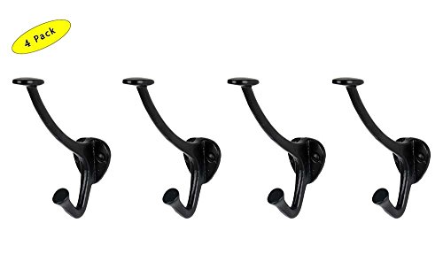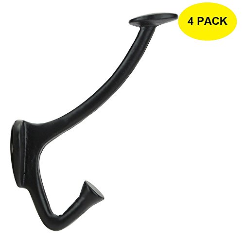 A29 4 3/4 Inch Southwell Cast Iron Double Coat Hook, Black Powder Coat Finish, Set Of 4