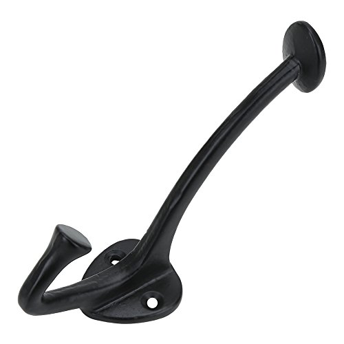 This solid cast iron double hook has a rustic style and is perfect for coats, hats, scarves and other garments