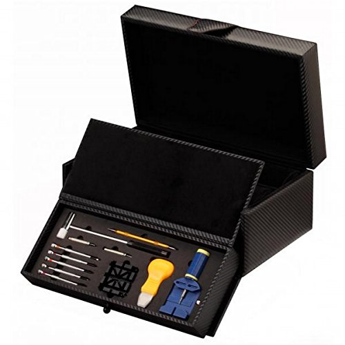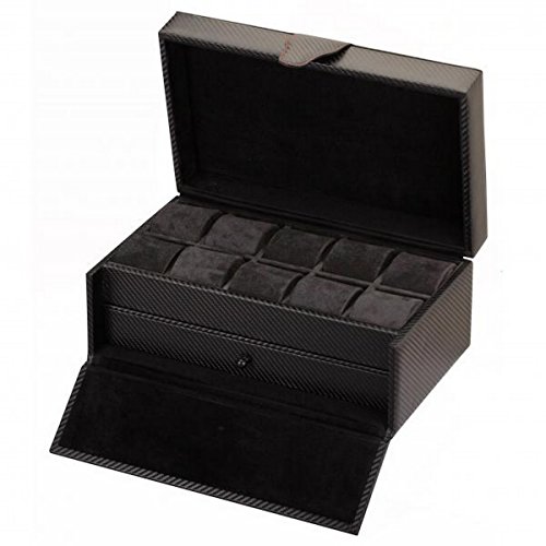 -. Title : Black Carbon Fiber 10 Watch Box Case w/ Watch Tools