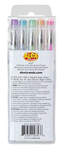 -. Binding : Toy -. Brand : ALEX Toys -. Department : baby-girls -. EAN : 0731346097538 -. Feature : Gel pens are so much more fun than your ordinary pen and add something special to writing and doodling / Each pen contains a mix of colors, so the ink changes colors as you write / Gel ink glides smoothly on paper / Includes (5) gel pens / Recommended for children age 3 and up -. Label : ALEX Toys -. Manufacturer : ALEX Toys -. Model : 975S -. MPN : 975S -. PackageQuantity : 1 -. PartNumber : 975S -. ProductGroup : Toy -. ProductTypeName : TOYS_AND_GAMES -. Publisher : ALEX Toys -. Studio : ALEX Toys -. Title : ALEX Toys Artist Studio 5 Swirl Gel Pens -. UPC : 731346097538 -. Warranty : No Warranty