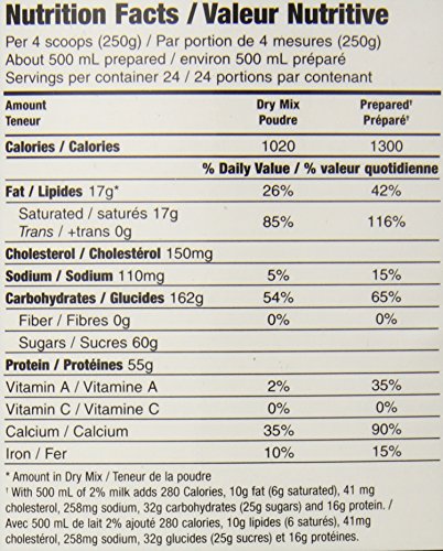-. Feature : Great taste / 990 calories / 10.9 grams of glutamine precursors / 13 grams of BCAAs / Ideal for hard gainers