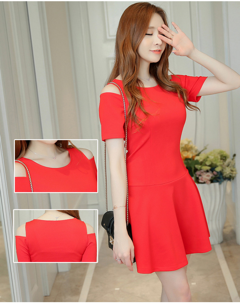 春夏新款女装韩版时尚针织气质修身显瘦打底短袖连衣裙