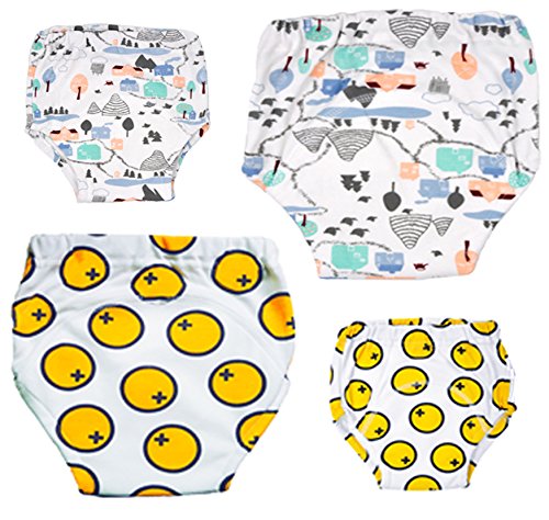 Features: Training pants are ideal for toddler boys and girls who want to feel like they're wearing 'big girl' pants while potty training and used when accidents are less frequent. MooMoo Baby Training Pants has been extra padded in the front and back, it's water resistant and better water imbibition than normal underwear. Products Material: 4 Layers bamboo. Products size: S/L/M Package included: 4 Pack training pants Care: 1)Wash it before first use 2)Machine Washable 0