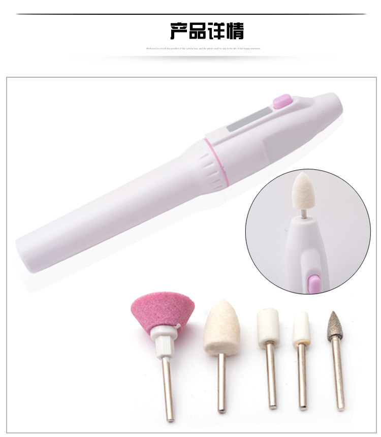 1. Battery Electric White Nail Set Art Grooming Gel Acrylic Tip Tool with 5 Drills