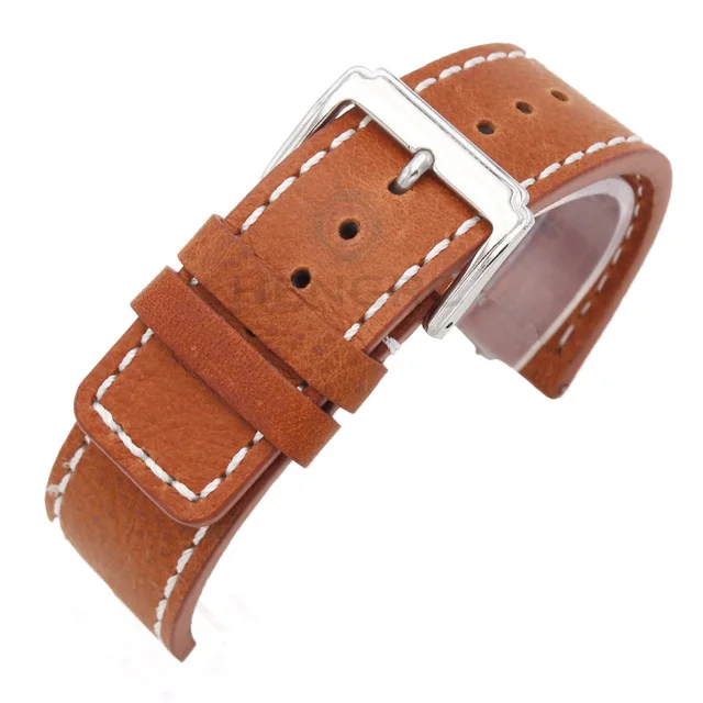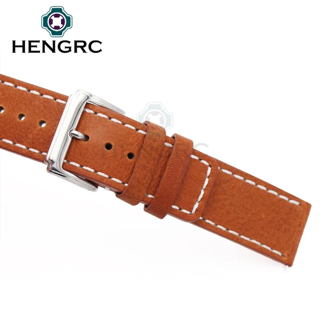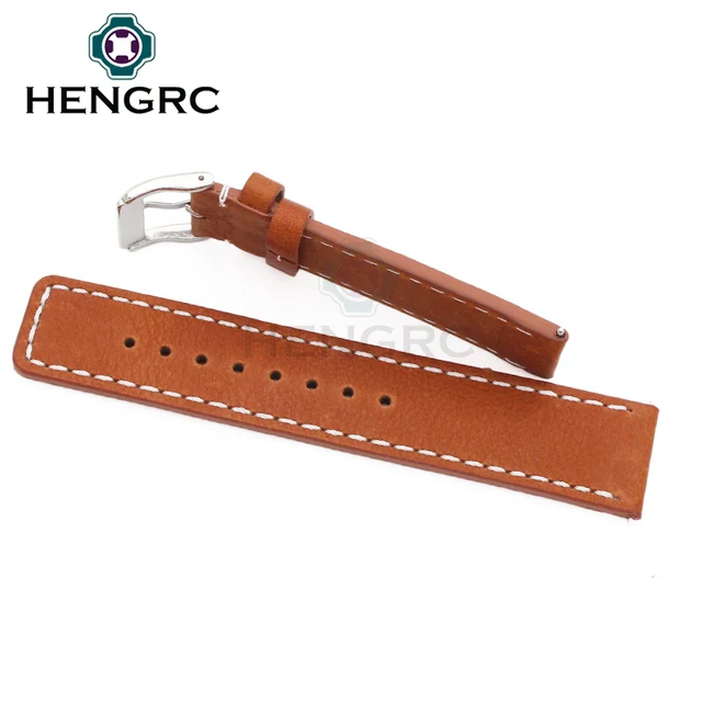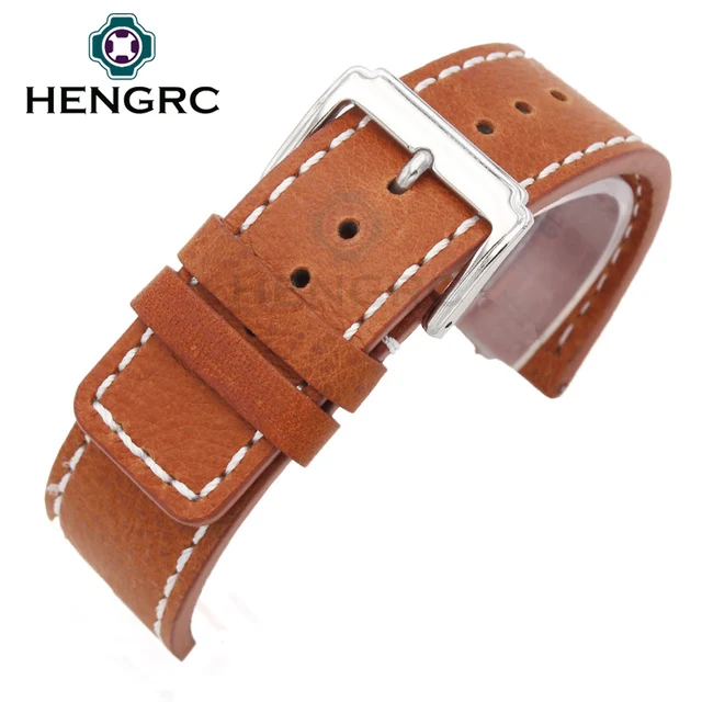 | [해외] HEGRC 20 미리메터 22 미리메터 시계 밴드 스트랩 남성 Hight 품질의 정품 가죽 브라운 줄 금속 핀 버클 액세서리 |