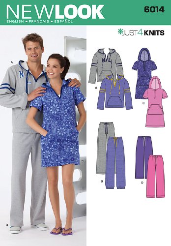 -. Feature : Misses' and Men's Just 4 Knits Separates in size A (All Sizes), New Look Pattern #6014 / Number of looks included: 4 / Designed in UK, Manufactured in USA / Instructions are written in English, Spanish, and French / Sested fabrics: Sized for stretch knits only: Jerseys , Lightweight Double Knits, Double Knits, Fleece, Sweatshirt Fleece, Velour; see Pick-A-Knit Rule; allow extra fabric for matching plaids or stripes